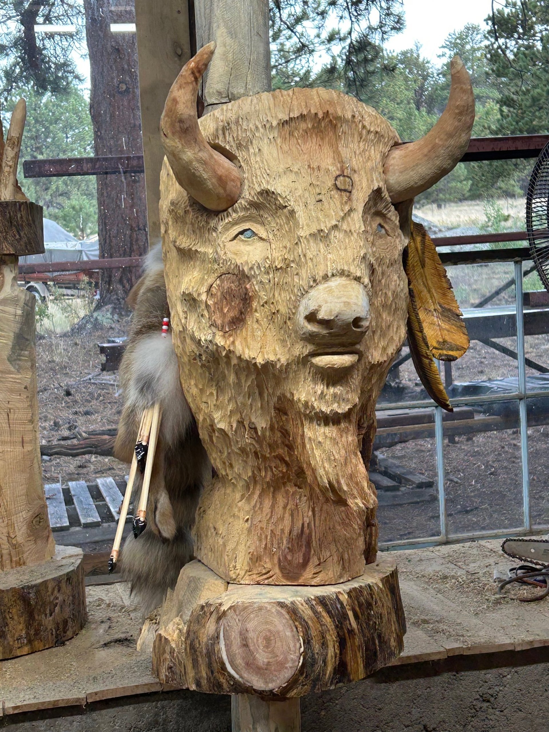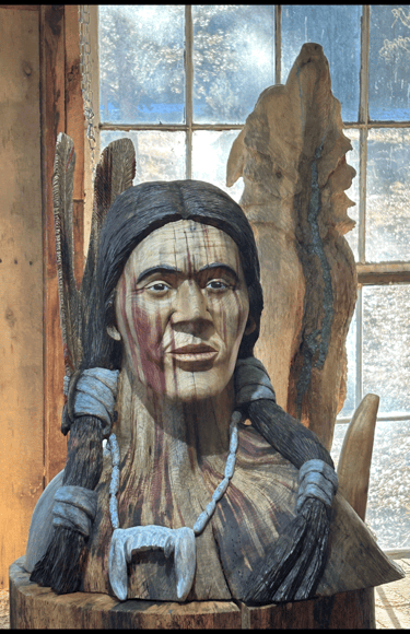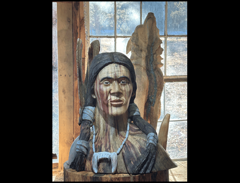 Unique carvings inspired by Native American culture.